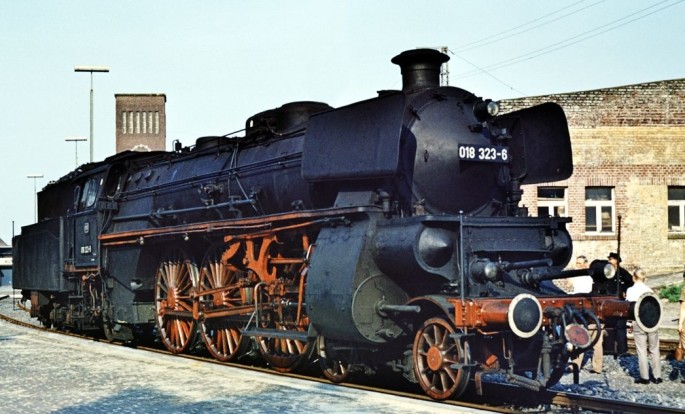 Märklin stellt die 18 323 als H0-Modell auf die Gleise und setzt der Baureihe damit ein würdiges Denkmal. Das neu konstruierte Modell erscheint als Märklin-Version unter der Artikelnummer 38323 und als TRIX-Version unter der Artikelnummer 25323. Es zeigt den Zustand um 1966. Die hochdetaillierte H0-Schnellzuglok ist überwiegend aus Metall gefertigt und mit einem Digitaldecoder ausgestattet, der zahlreiche Soundfunktionen ermöglicht. Außerdem besitzt das Modell einen eingebauten Raucherzeuger mit dynamischem Rauchausstoß. Die Führerstandsbeleuchtung kann, ebenso wie die Fahrwerksbeleuchtung und das Feuerbüchsenflackern separat geschaltet werden. Das 27,2 cm lange Modell durchfährt alle Radien ab R1 (360mm). Zum Befahren der kleineren Radien R1/R2 ist die Lok mit weit ausstehenden Leitungen unterhalb des Führerhauses ausgestattet. Diese Leitungen können für die Vitrinenpräsentation oder den Einsatz auf größeren Radien gegen vorbildgerechte engere Leitungen getauscht werden.
