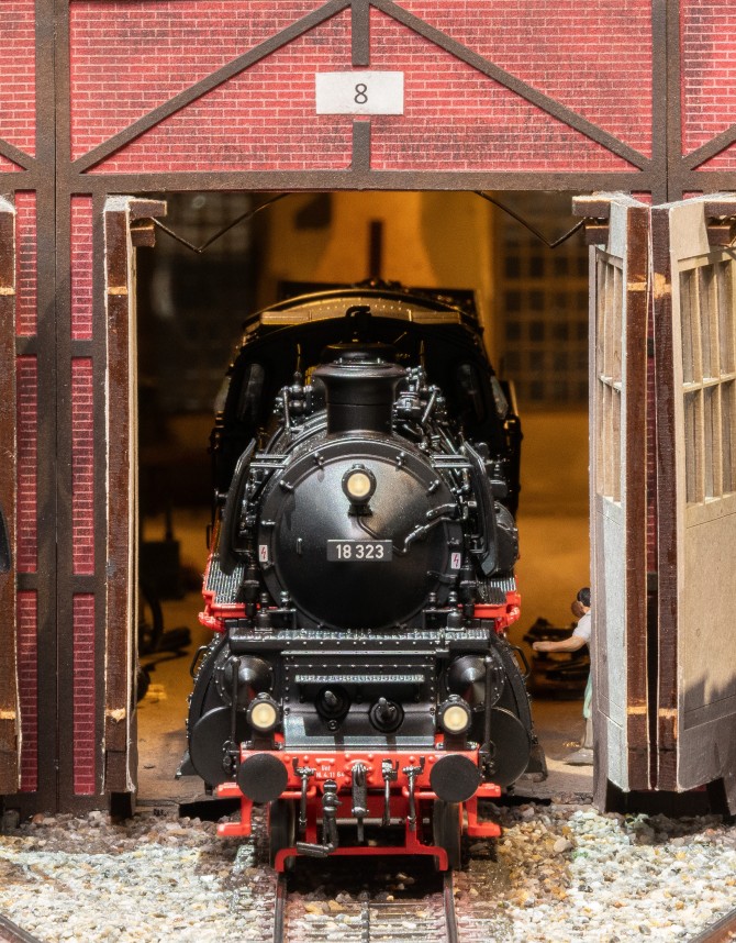 Das Modell der 18 323 im Stil der historischen Bilder. Unser Dank gilt den engagierten Betreibern der Eisenbahnstiftung Joachim Schmidt, Joachim Bügel und Kollegen!