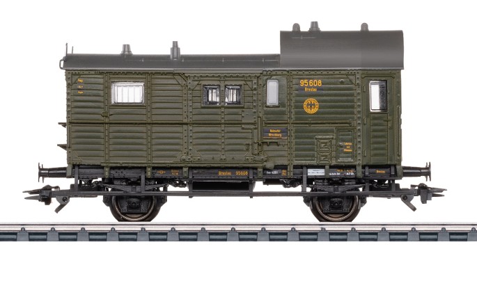 In den 1920er - und 1930er Jahren wurde jedem Güterzug ein Güterzugbegleit- bzw. Güterzuggepäckwagen (bahntechnische Bezeichnung) beigestellt. Diese Wagen dienten der Unterbringung des Zugführers als oberster Dienstherr, dem Packmeister, Bremsern, Rangierern und ggf. weiterem Personal. Diese Wagen waren festen Dienststellen zugeordnet und wurden von dieses unterhalten. So lief mit einer E 95 in dieser Zeit also auch immer ein Pwg (Güterzuggepäckwagen) mit. Passend zum Kohle-Ganzzug aus "OOt Oldenburg" wird als exklusiver Clubartikel auch ein Pwg 14 mit entsprechender Beschriftung der Dienststelle Breslau angeboten. Das Modell erscheint erstmalig mit durchgehendem Trittbrett und langer Griffstange an der Längsseite.
