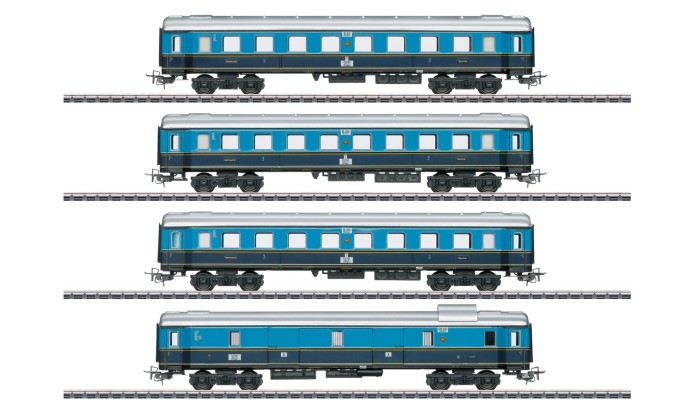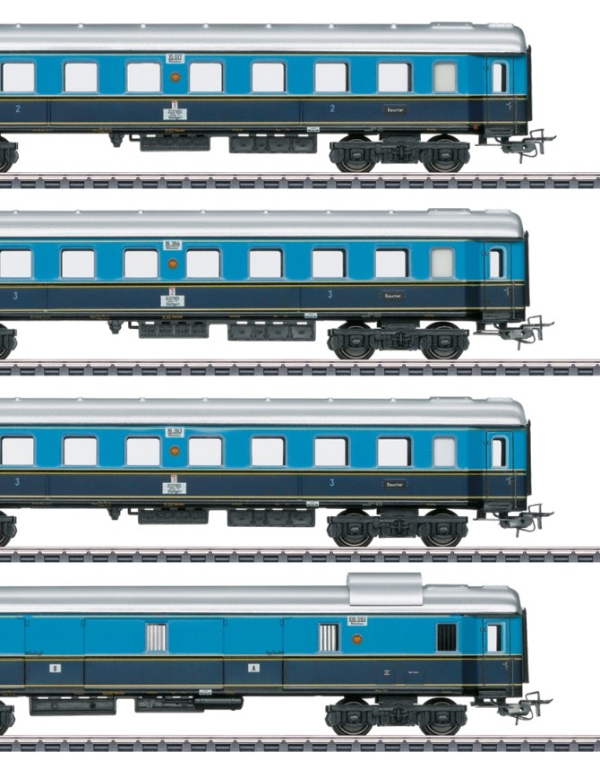 Passend zu "Retro"-E44 erscheint nun ein Wagenset mit vier Schnellzugwagen in dieser schönen Lackierung. Dabei sind die Wagenkästen traditionell aus Blech gefertigt und hochwertig lackiert und bedruckt.