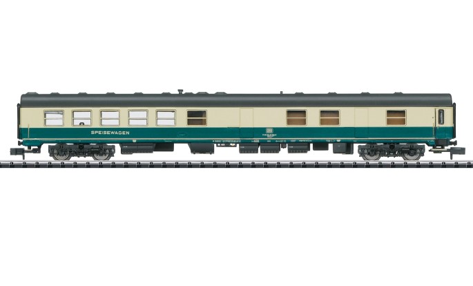 Das neu konstruierte MINITRIX Modell stellt den Betriebszustand um 1985 dar. Der Wagen trägt die damals aktuelle Farbgebung der Schnellzugwagen. Das Modell besitzt Kurzkupplungskinematik und kann mit einer Innenbeleuchtung nachgerüstet werden.