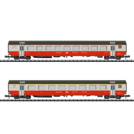 Dieses Set ermöglicht die Ergänzung des Zuges um je einen weiteren Wagen der 1. und der 2. Klasse.