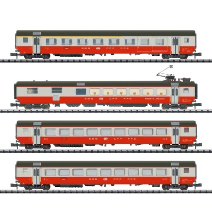 Dieses vierteilige Set bildet die Gundeinheit inklusive des immer im Swiss-Express enthaltenen Speisewagens.